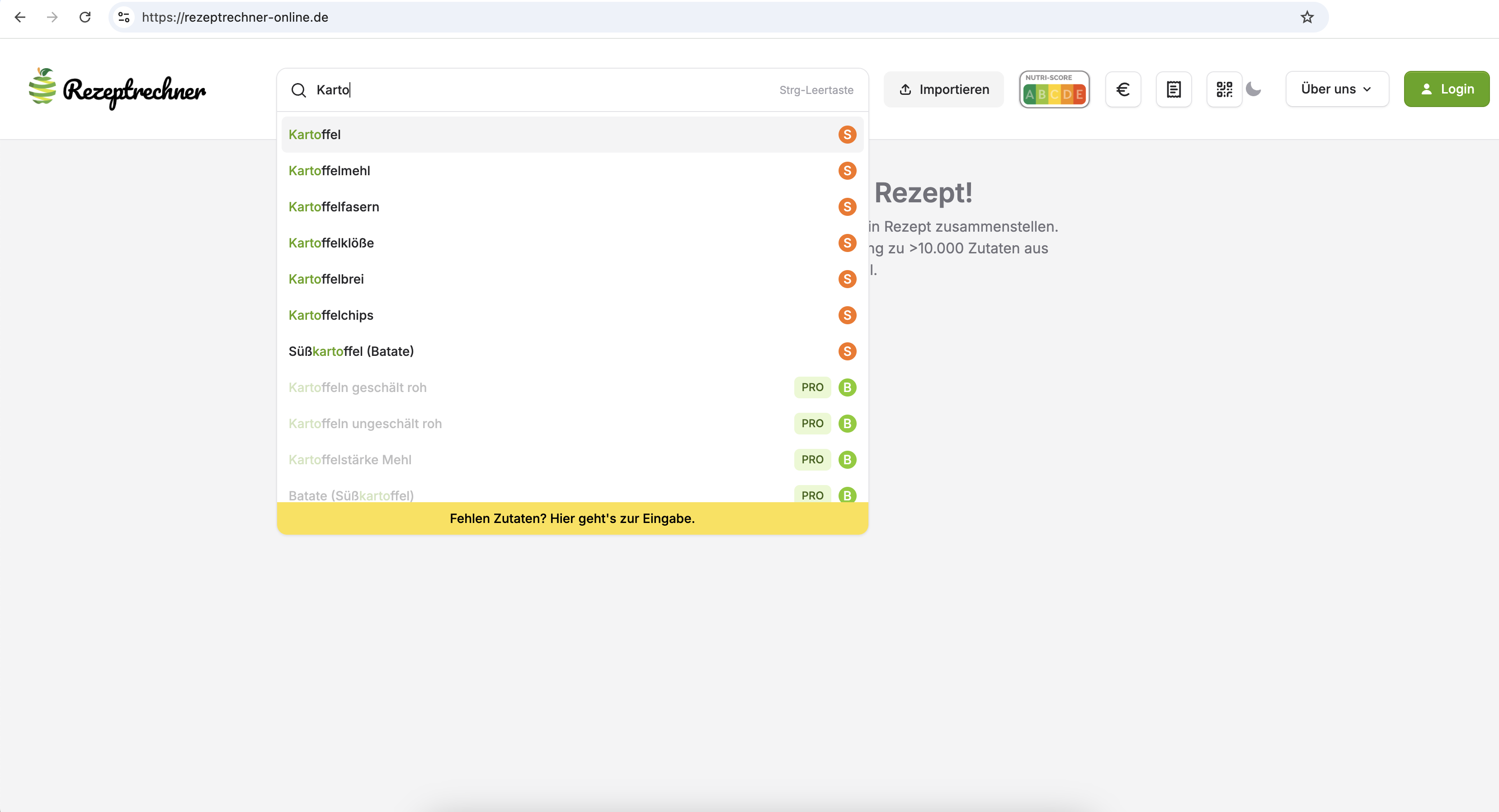 Die kostenlose Variante dient dazu, die Rezepteingabe auszuprobieren. Du kannst ein Rezept eingeben und die Nährwerte berechnen.