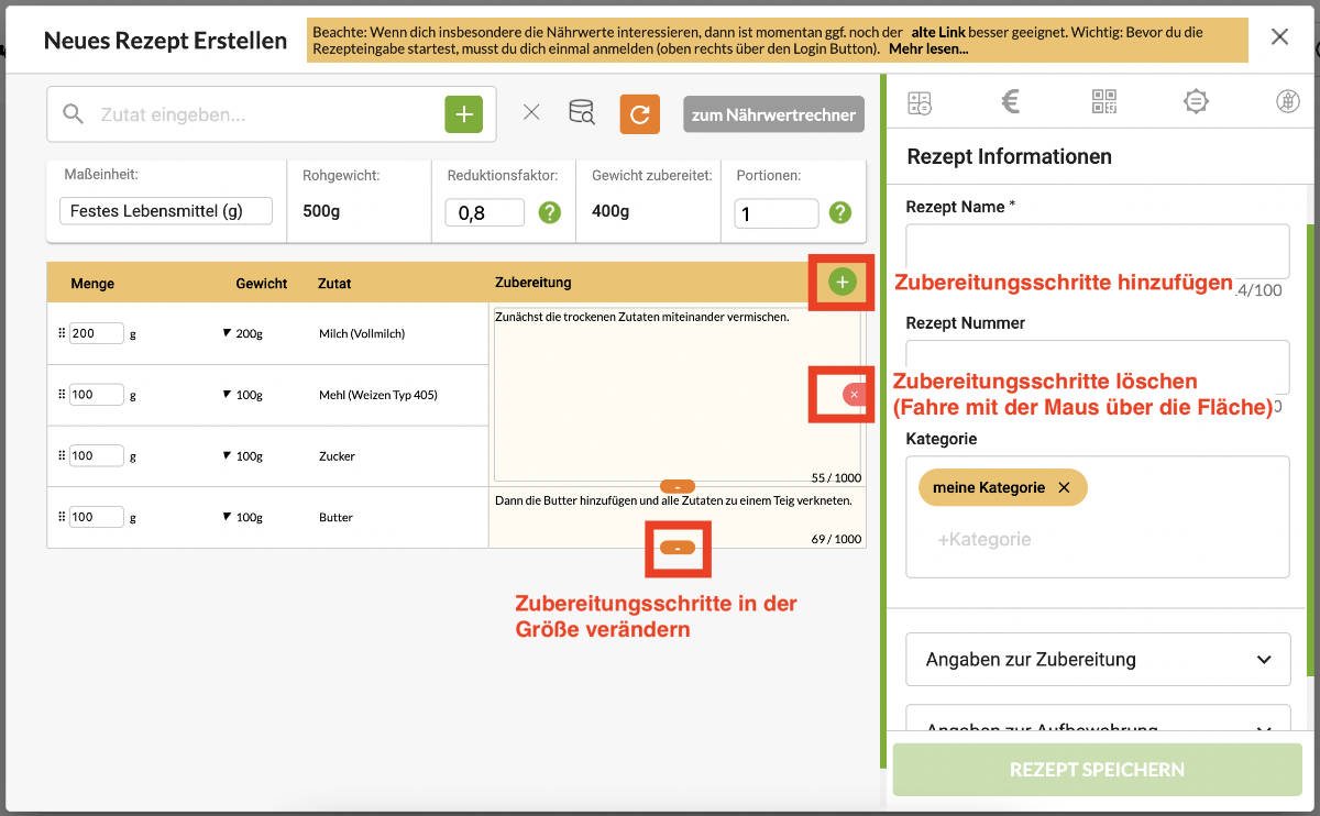 Anleitung: Rezepteingabe