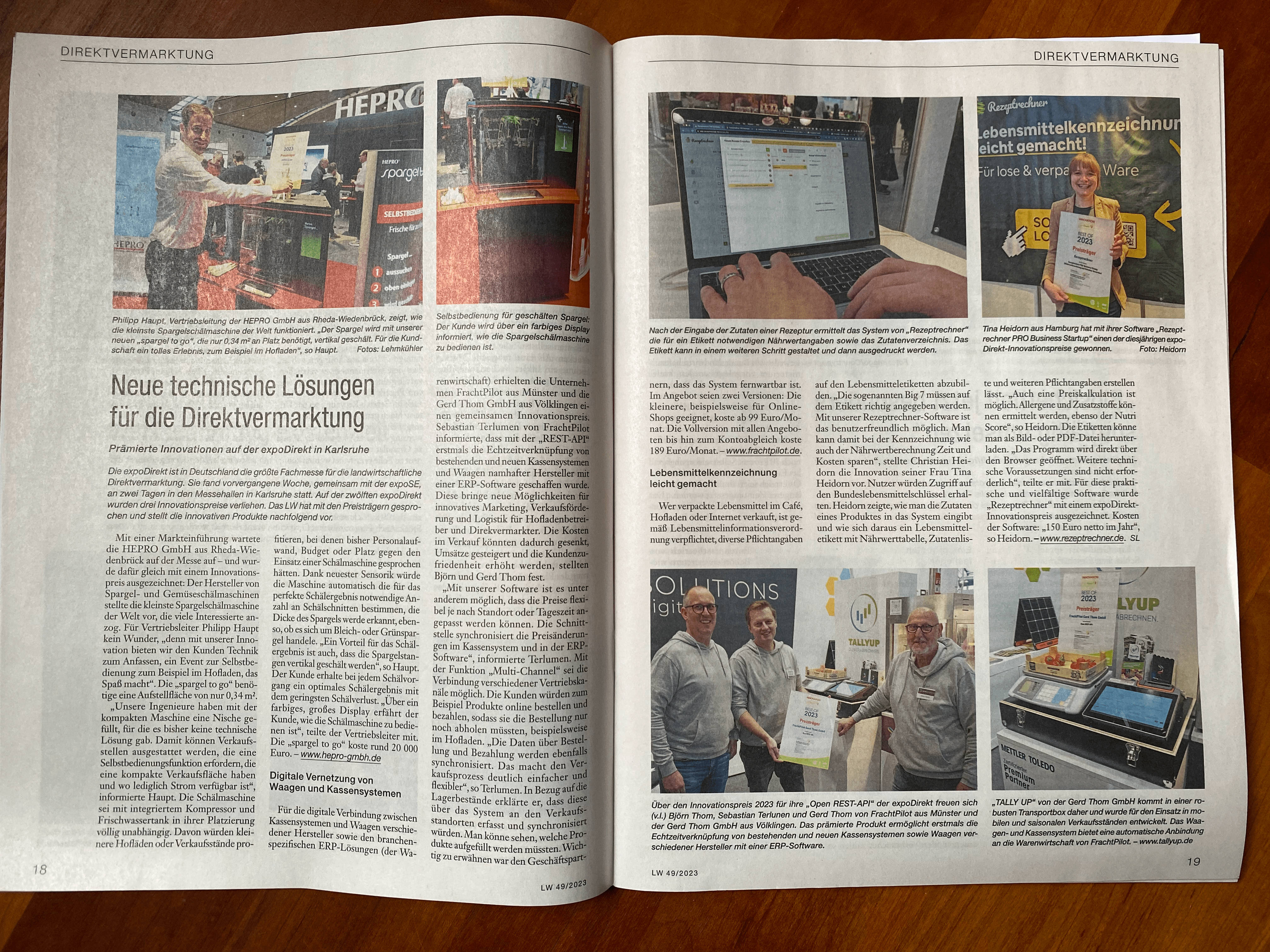 Mit unserer Lösung zur Nährwertkennzeichnung und dem Etiketten-Generator für Direktvermarkter wurden wir auf der expoDirekt 2023 in Karlsruhe mit dem Innovationspreis ausgezeichnet.